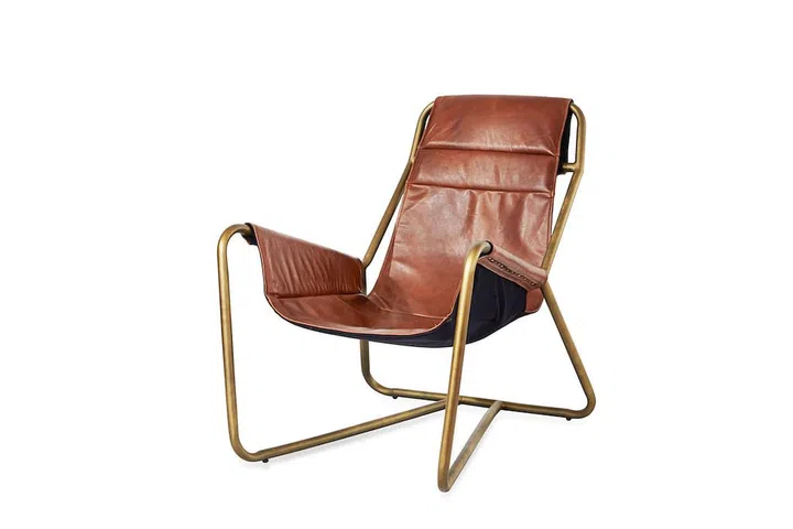 Texan Medium Brown Leather Cover with Canvas Backing. King Pin Brass Fabricated Bent Metal Tube Frame