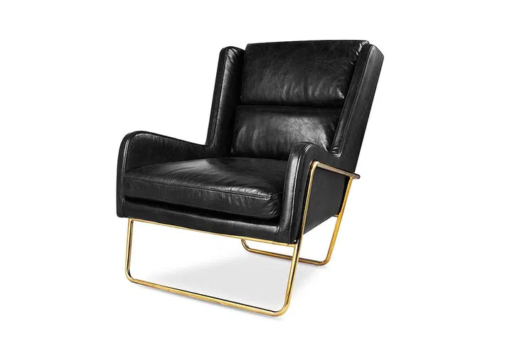 Occasional Chair with King Pin Brass Metal Frame & Easy Rider Black Leather for Whole Chair