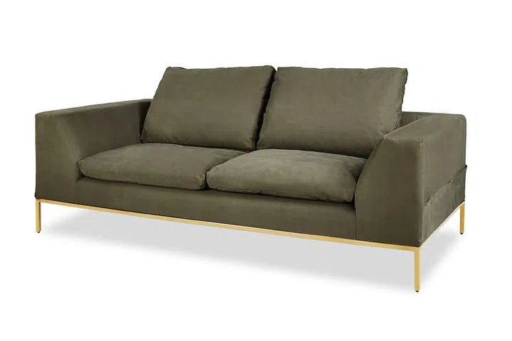 2 Seat Sofa with Brass Plated Polished Frame and Oregonnor Green Body