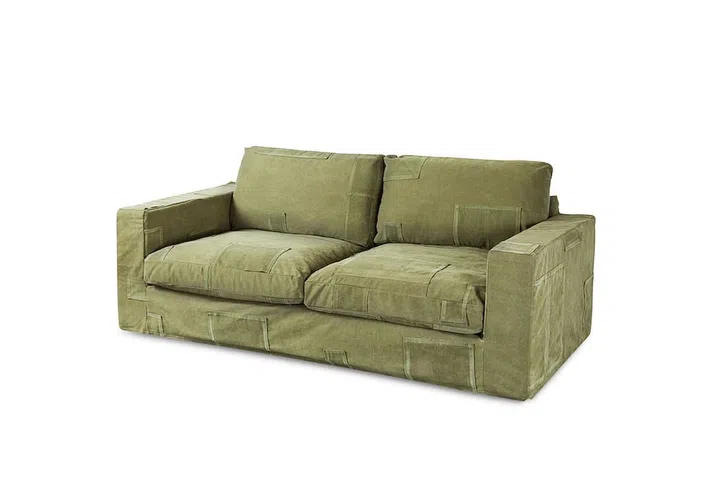 2 Seat Sofa, Patchwork New Army Fabric for Whole Sofa, Easy Removable Sofa Cover