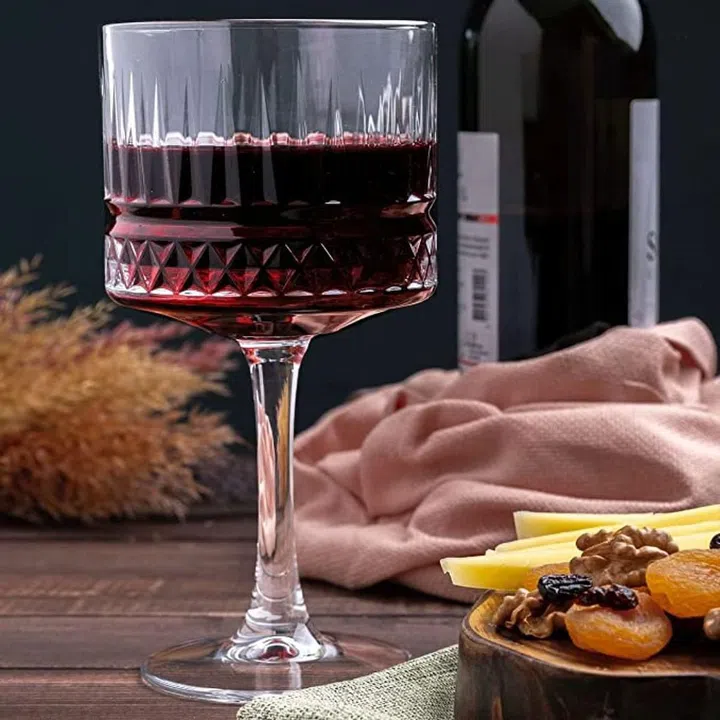 Goblets, like wine glasses, are footed and stemmed glassware. But they are more flexible than wine glasses, and can accommodate a variety of cocktails and desserts like trifle and fruit. These large vintage Buybox goblets will add a touch of dramatic flair to your drinks and desserts.