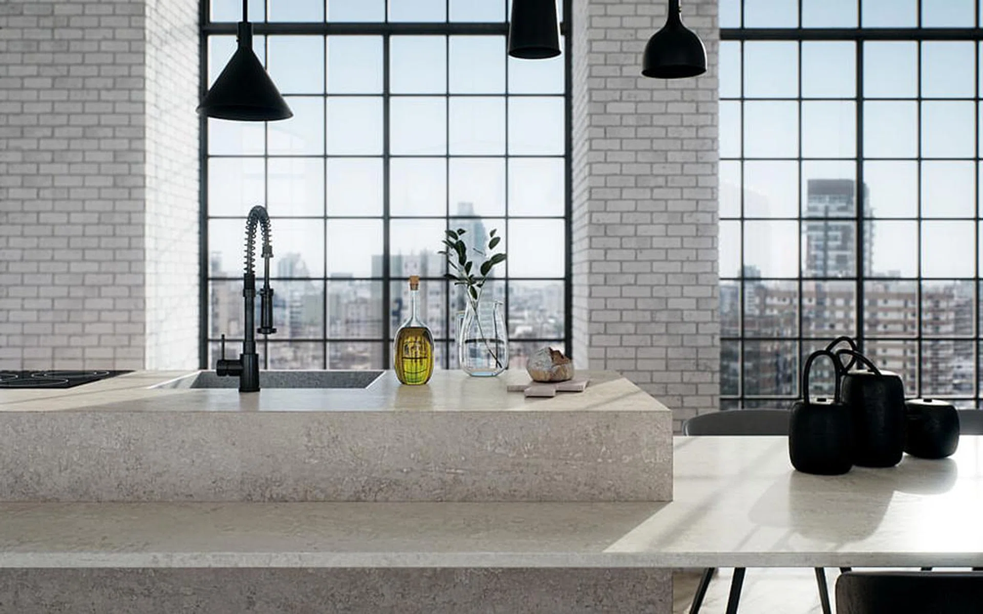 A kitchen dressed with 4033 Rugged Concrete from Caesarstone's Metropolitan Collection.