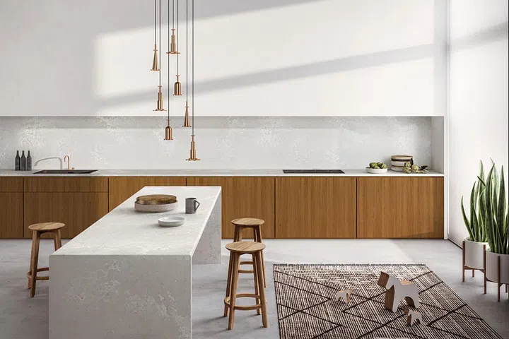 A kitchen dressed with 4023 Topus Concrete from Caesarstone's Metropolitan Collection.