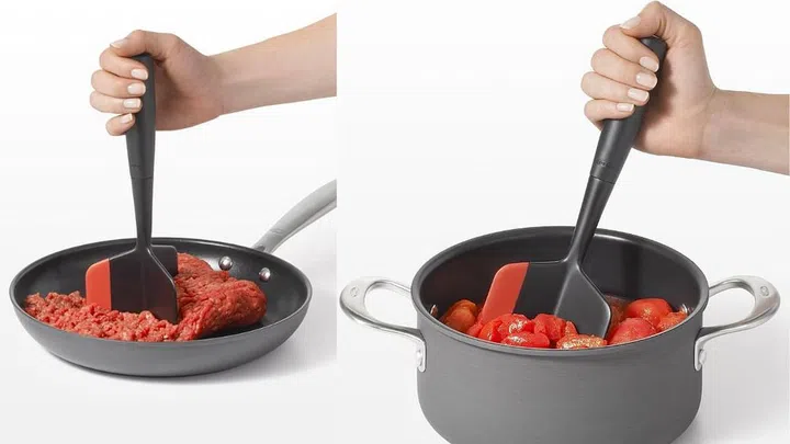 Whip up consistent, finely-chopped meat dishes with the OXO Good Grips Ground Meat Chopper. Designed for efficiency, this tool effortlessly breaks up and blends raw meats for uniform cooking and optimal flavor distribution.