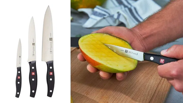 This 3-piece ensemble includes a 4-inch paring knife, 6-inch utility knife, and an 8-inch chef's knife.