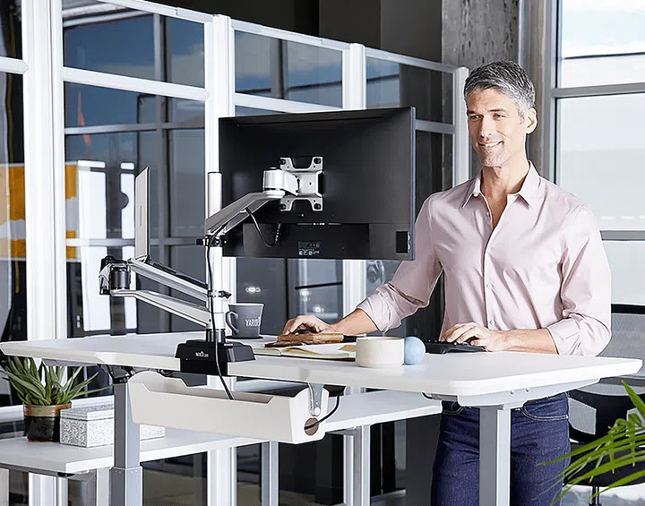 If you are constantly seated at your desk during the day, chances are you may have experienced backaches or a stiff neck from prolonged sitting and extended periods of inactivity. To break the sedentary sitting habit, a sit-stand desk that allows you to alternate from sitting to standing positions is a great idea. Not only does it give you the option to work in different positions, but it also introduces some movement into your office lifestyle as well.