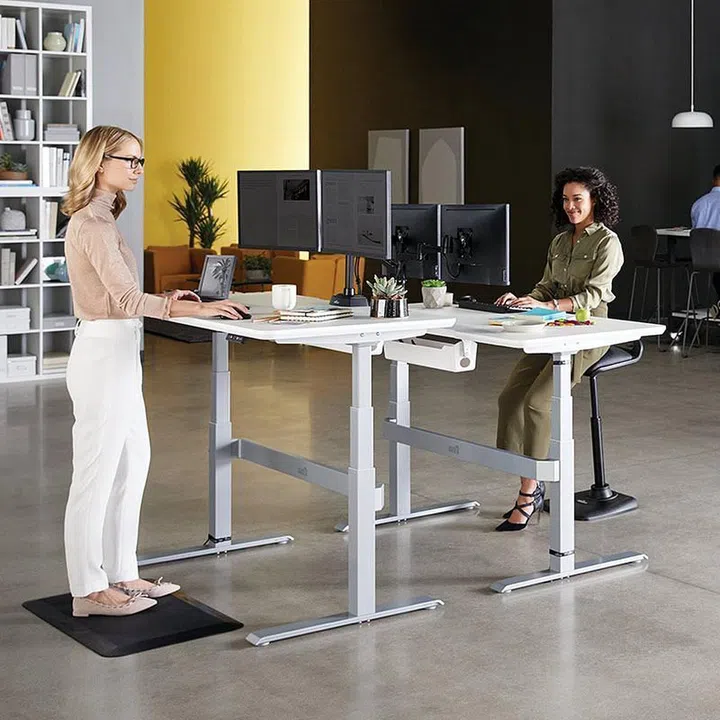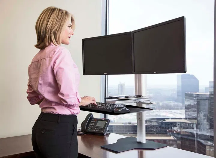 A sit-stand desk is a great option for people who suffer from chronic lower back or neck pain, as the weight of the body, which is mostly supported by the pelvic region in the sitting position, shifts downwards to the soles of the feet.