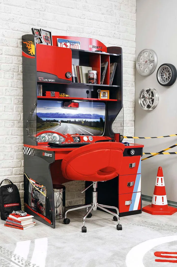 This Champion Racer Concept Desk With Unit ($1,399) from Cilek looks promising.