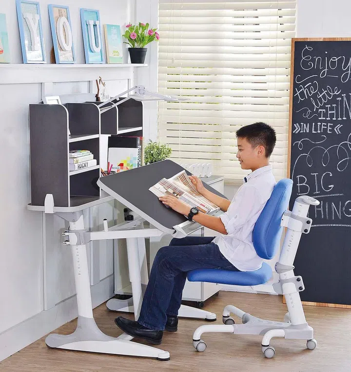 The Intelligent Kids Desk & Chair 1.0 from Tomato KidZ (from $1,499) includes a height-adjustable desk with a tiltable top, ensuring the child has the correct posture even when growing.