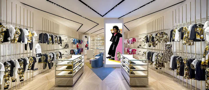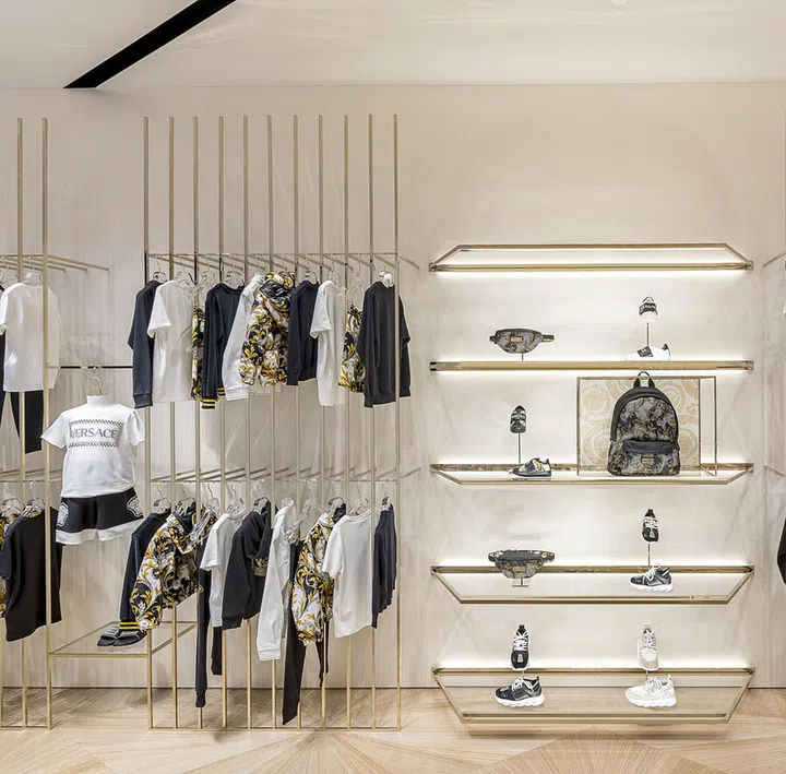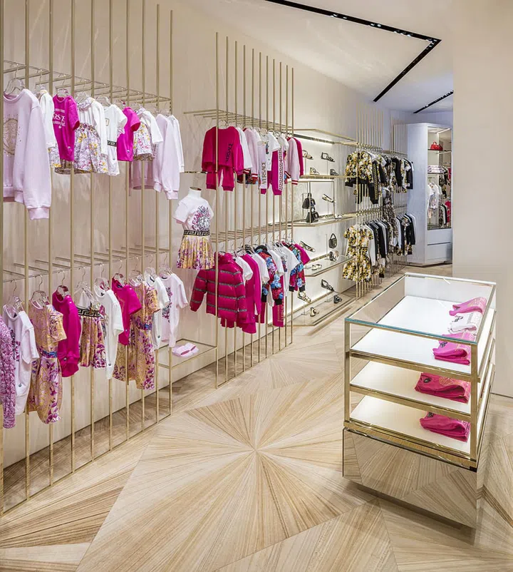Loud colours, geometric objects and oversized toy props have long been popular tropes in children’s fashion stores. But not at Versace’s new 90 sqm boutique for children that’s chic and inviting as well as on-brand and age-appropriate.