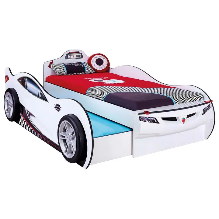 Perfect for young ones who dream of being race car drivers, these car beds by European furniture brand Cilek are made with durable polystyrene material that mimics the sleek shine of a real sportscar. It even includes LED headlights.