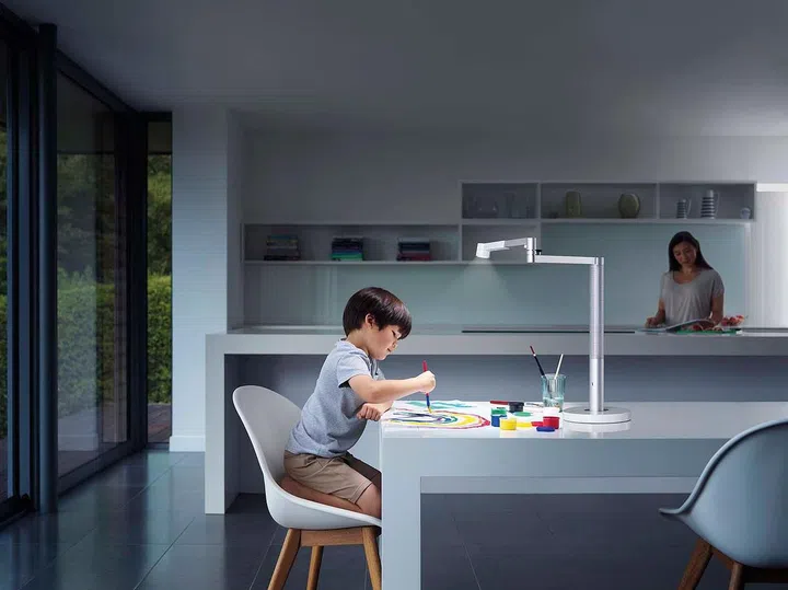 To help your kids maintain healthy eyesight, it’s crucial to ensure that reading and study areas are equipped with good lighting. Designed to reduce eye strain and improve visual performance, Dyson’s Solarcycle Morph is a unique task lamp that uses daylight tracking technology to provide indirect, feature, ambient or task lighting.