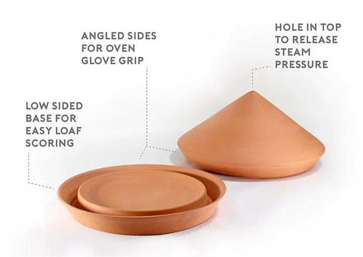 "A channel of water in the base of the pot allows steam to be created within the pot while the lid is on! Keeping the lid on helps trap as much heat at possible while creating the high humidity conditions similar to professional bakery ovens.