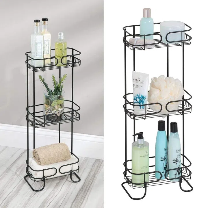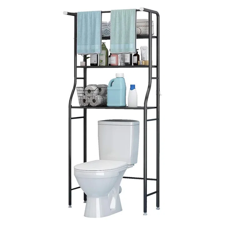 Here’s a chic way to save space in a small bathroom. This sleek 3-shelf bathroom space saver in chic black sits well over the toilet rack and provides ample space to store anything from towels to toiletries, and even decorate with potted plants. Built with thick steel pipes, this unit promises stability, especially with its reinforced wall stickers.