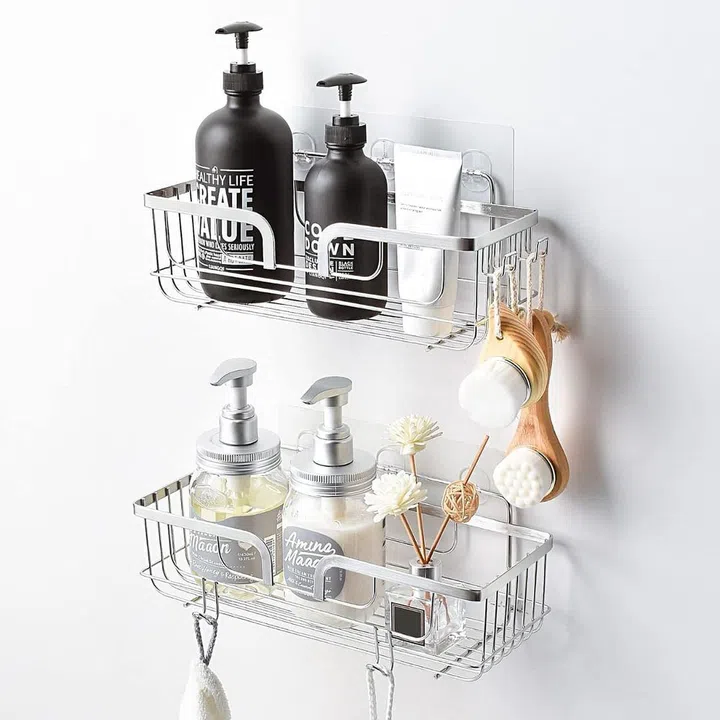No drills, no fuss - just some seriously sturdy adhesive action. This slick shower caddy has double-tiered shelves and nifty hooks, making it a solution for crammed shower spaces.