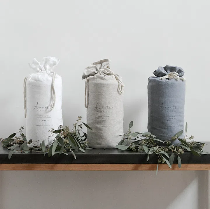 Flax was also chosen because every part of the plant can be used, from the seeds to the linseed oil. Annette's sustainability efforts include providing a linen drawstring bag to hold and store the sheets. This cuts down on single-use plastic pocket and cardboards.