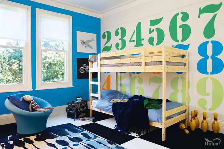 USE COLOURS TO HELP THEM LEARNLearning doesn’t have to be boring if you use colours. Take a leaf out of this home and turn the numbers chart into a decorative feature using stencils and paint.