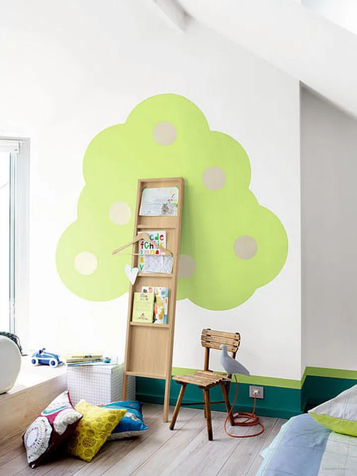 Turn functional furniture pieces into decor features with the help of paint colours. Create a tree by painting foliage around a tall, narrow wooden shelf. Or use paint to create a simple height chart! It’ll be both functional and fun.