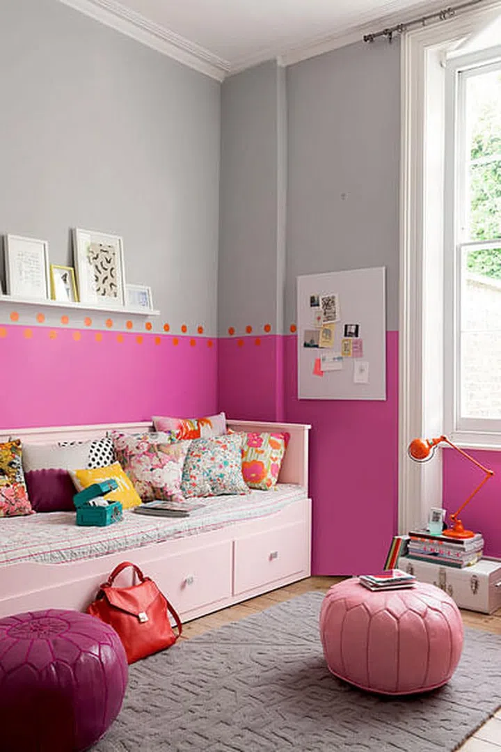 HELP MAKE THE TRANSITION INTO THE TEENAGE YEARSTone down a hot pink hue with a cool shade of grey. The neutral tone will add a touch of sophistication to the bright colours of your child’s room.