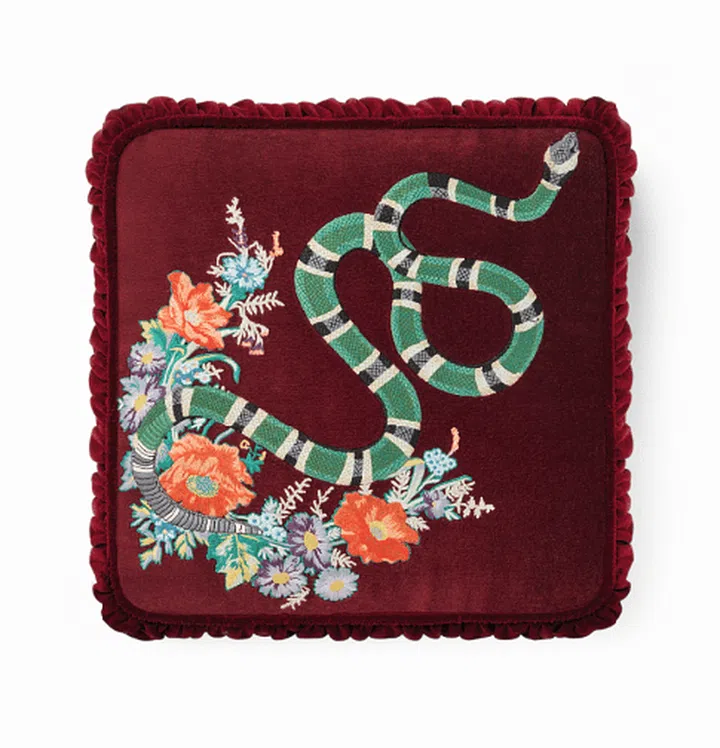 Each pillow’s hand-embroidered motif, from Angry Cat to the Kingsnake, took almost 10 hours to complete. We first got a sneak peek of these cushions during Gucci’s Resort 2017 show in Westminster Abbey, London, where they were gifted to guests who promptly Instagrammed it. What do you think of these pillows?