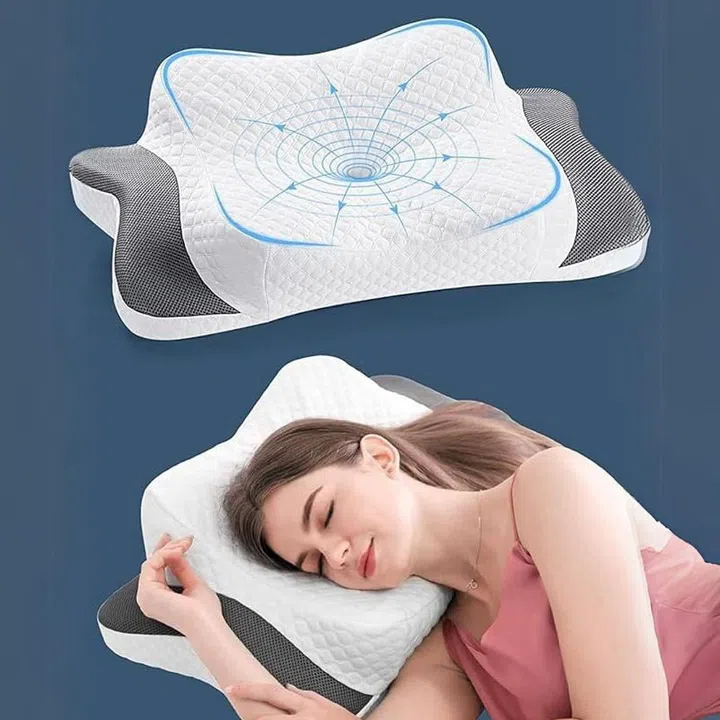 This ergonomic adjustable contour cervical pillow is designed for sleeping and aims to relieve neck pain. It features memory foam with slow rebound properties, ensuring even release and distribution of pressure.