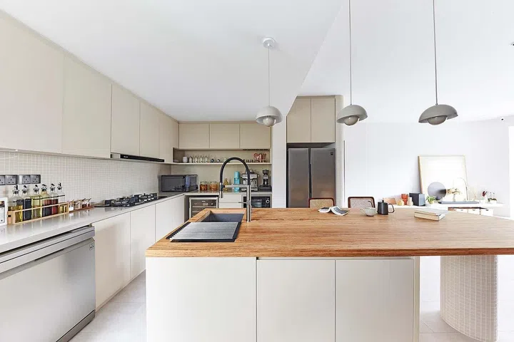 For kitchen island layouts, a pendant island hood, like the one from Rinnai, doubles up in function as a pendant lamp, while keeping the air ventilated and purified. Designed to resemble a pendant lamp, homeowners can also add extra units for a symmetrical look.