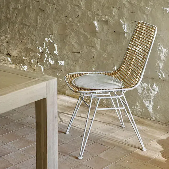 Beautifully designed with natural rattan, Tishana chair is chic and charming in its unique way. The chair frame is in a modern shape, just like the iconic Eames molded chair, but Tishana chair comes with rattan weavings instead.