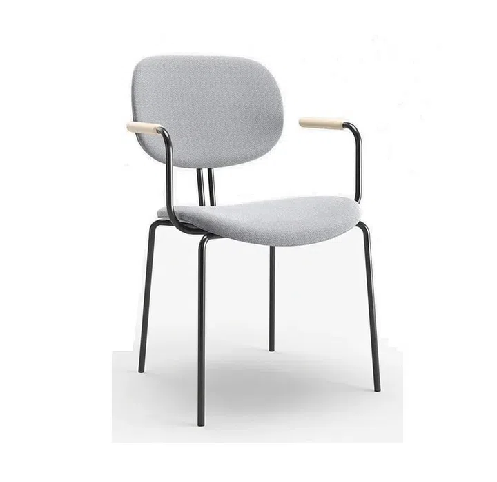 On top of its steel structure, you will find contrasting wooden armrests, with fabric upholstered backrest and seat for the comfort you need.