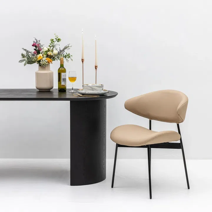 If you cannot get enough of curved furniture, the Celeste dining chair is an absolute stunner with its rounded thin structure that envelops and provides you with the cozy feeling of a nice warm hug.