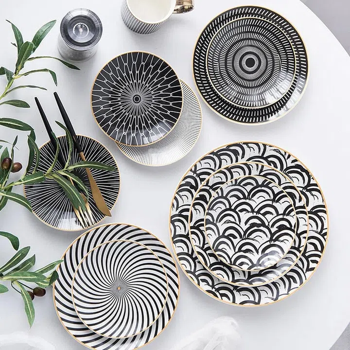 If you are looking to add a touch of chic and luxe, the selections with hints of gold accents from VenettoDesign, a European homeware brand may be just what you need. In the Illusion plate set, there are 6 different stylish and modern geometric plate designs with the use of basic strokes and lines to achieve these fancy aesthetics in black and white. The gorgeous geometrical designs work well in amping up any food presentation.