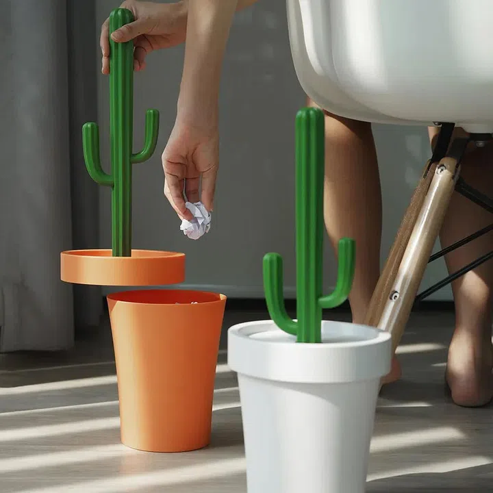 Cactrash Bin works perfectly in living rooms as it is a functional decoration item, that works as a faux plant and a waste bin that allows you to conveniently pull off the lid to throw your paper waste away. The lid is also cleverly designed for you to push and compress any paper waste product to make space for more.