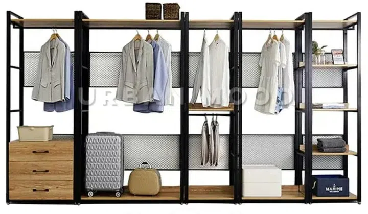 An open wardrobe is useful and functional as a coat rack when they are placed in entryways to hang any bags and outerwear. If you have the luxury of space, you can have an open wardrobe rack on top of your standard closed wardrobes to easily access your everyday wear. Open wardrobes are also a great addition to service yards and laundry rooms.