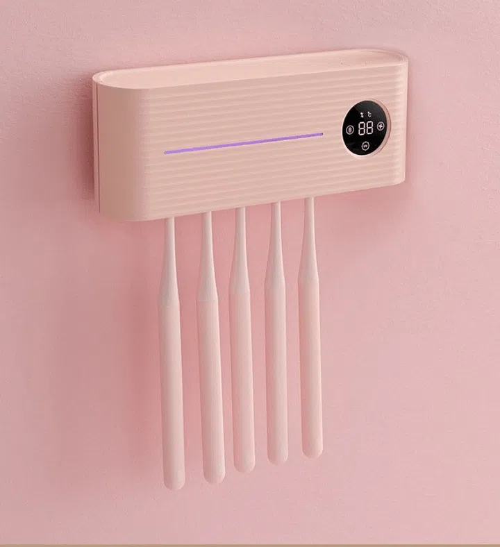 UV toothbrush steriliser holder set is retailing at $34.45, comes in white or pink colour options on Shopee.
