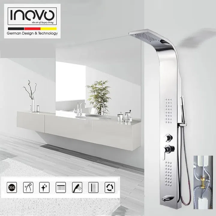 It comes in a modern and elegant one-piece design that incorporates the rain shower as well as the massage jets. It is also designed with a lower tap, and a separate handheld shower for easier cleaning of the bathroom. You will get to choose from luxurious colours of gold, silver, or jet black for the Inovo Mira rain shower set.