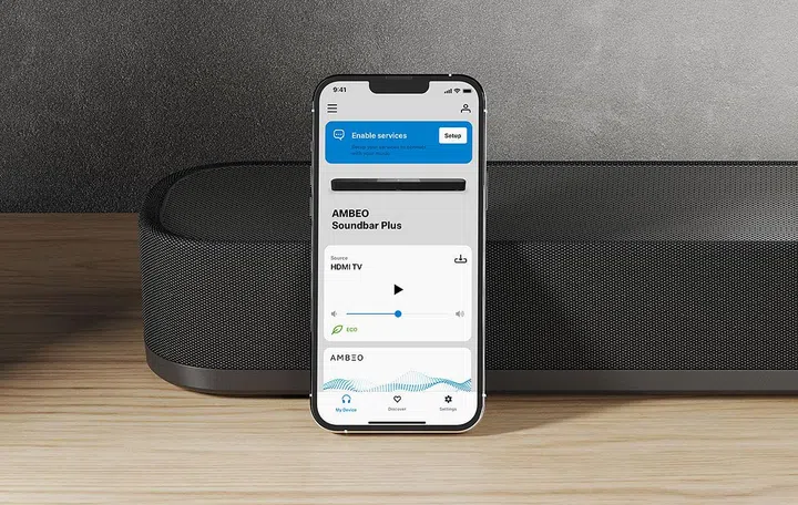 An Internet connection to the Ambeo Soundbar Plus matters because of Sennheiser’s proprietary Smart Control app, which houses its customisation and controls all in one place. That said, you can still control the soundbar with its included remote control. Like its predecessor, the Ambeo logo lights up when triggered.