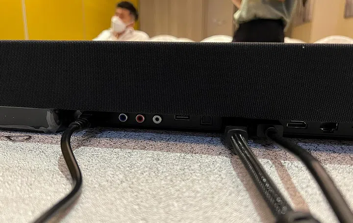 Around the back, you’ll find a range of ports, including dual HDMI 2.1 inputs, one HDMI-out (eARC) port, optical-in, aux-in, USB-C audio input, and of course, a sub-out for the accompanying subwoofer.