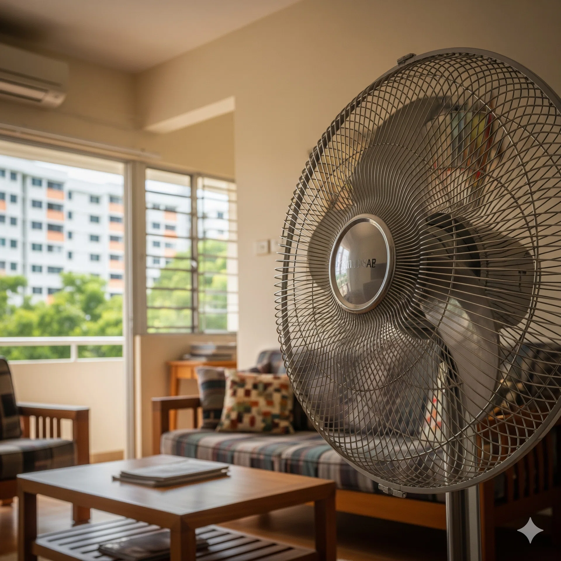 A standing fan provides a simple and versatile cooling solution to improve comfort and reduce energy costs. It is a practical tool for homes, offices, schools and many other situations in hot and humid Singapore.