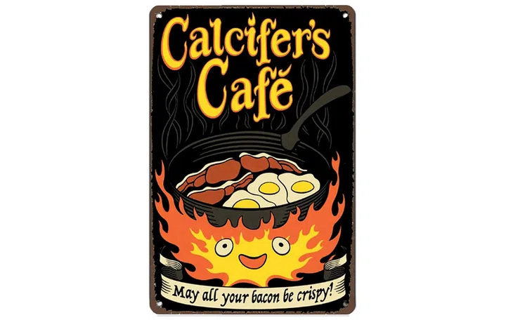Looking for a fun statement piece for your kitchen? Durable, waterproof and easy to clean, this fun Calcifer-themed metal sign is perfect for just that.