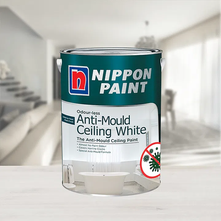 Nippon Odour-less Anti-Mould Ceiling White is available from $31.03 (1 Litre) on the Nippon Paint website.