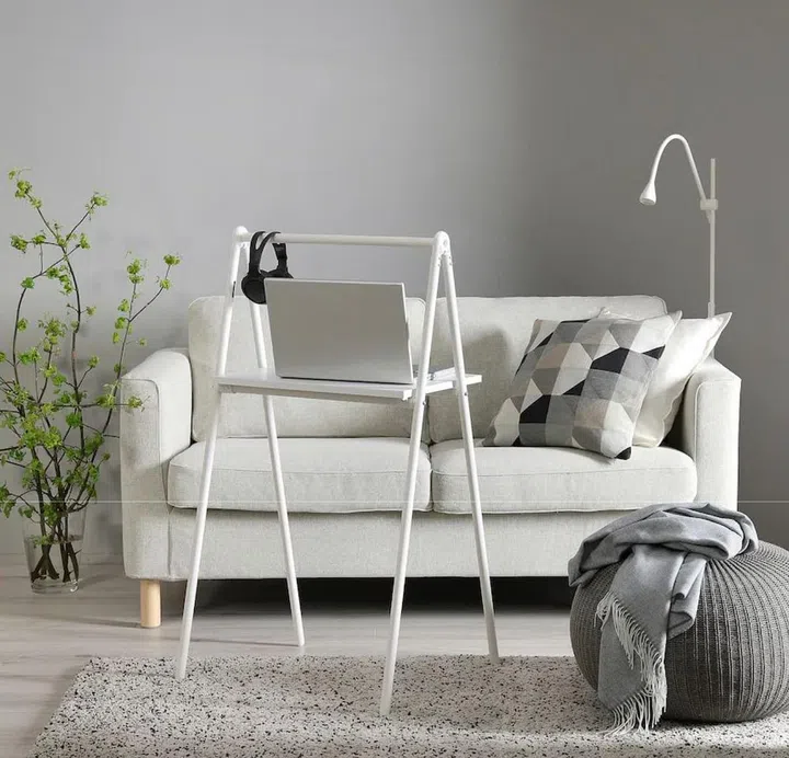 With the BJÖRKÅSEN folding table, you can work wherever you want, as it folds out to a tent-like frame where you can hang your earpiece or spectacles on, and tuck it away when it is not in use. Comes in black and white colour options.