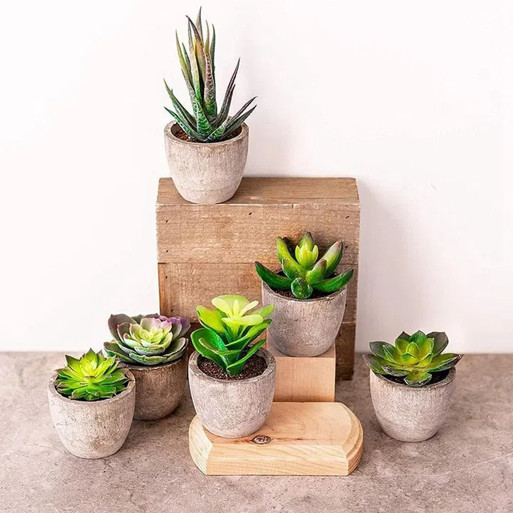 These mini artificial succulents come in concrete planters. Without the upkeep of regular plants, you get to enjoy all the green benefits, without worrying about watering them or worse the plants dying. This set includes six plants, including an aloe vera, shilian, money leaf, gem lotus, pearl lotus, and a water lily. These look great next to stationery, on a shelf, or by your window.
