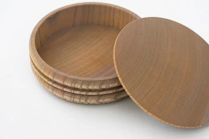 Made of Japanese zelkova wood, known for its distinctive grain and deep colour, this container is crafted by Gato Mikio, founded in 1908.