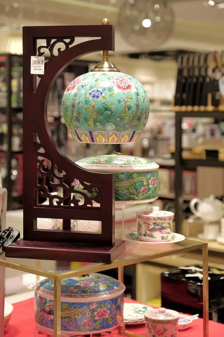 The range is designed to cater to modern tastes and is available at Tangs department store in Orchard Road. Jingdezhen, which has a 1,700-year history of porcelain-making, has been churning out Peranakan porcelain since the 18th century, although some porcelain makers can also be found in Penang and Malacca in Malaysia.