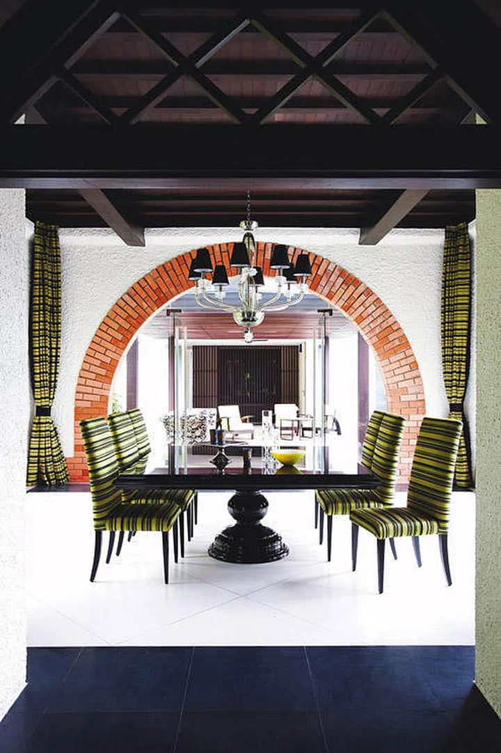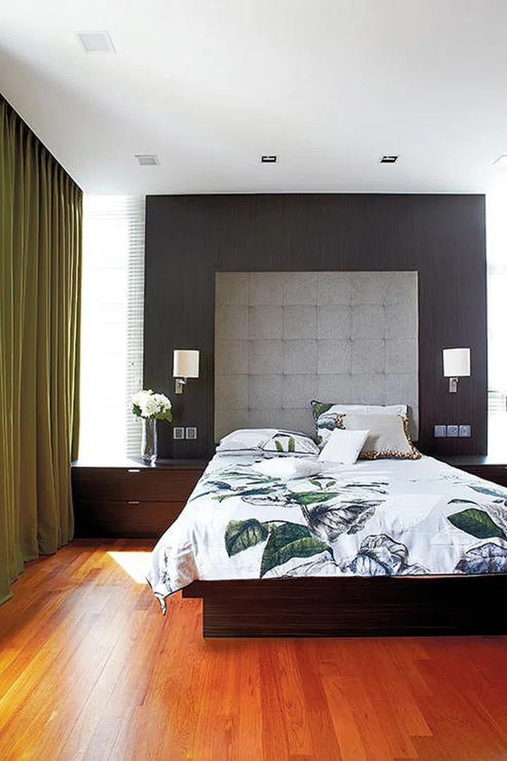 2. Soft furnishings: If a moss-coloured wall is not for you, try it on curtains or on upholstery. As it's an unexpected choice, they will stand out and give the room a good dose of colour.Interior design by Benjeemen Heng I.D.