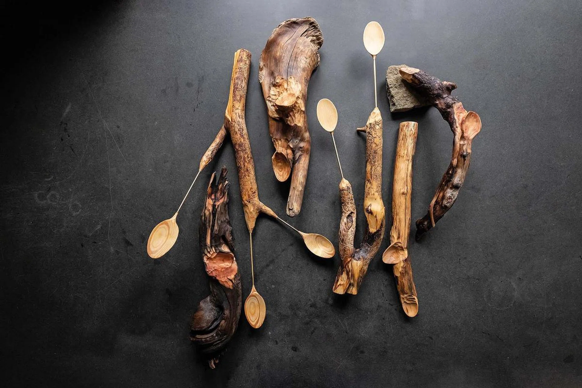 Together, they’re working with artists to create custom cutlery and tableware with a complimentary vegan temple menu. These fascinating pieces use only natural materials that are foraged, up-cycled or repurposed.