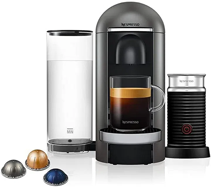 Nespresso VertuoPlus Premium Coffee Machine, Titan & Aeroccino Milk Frother Bundle