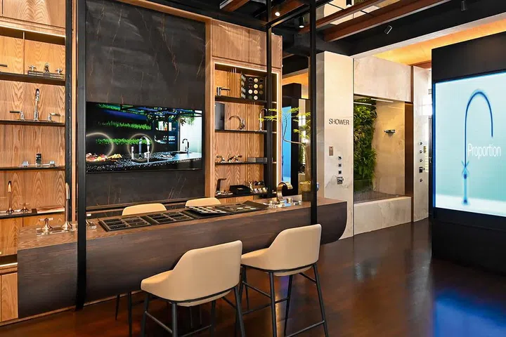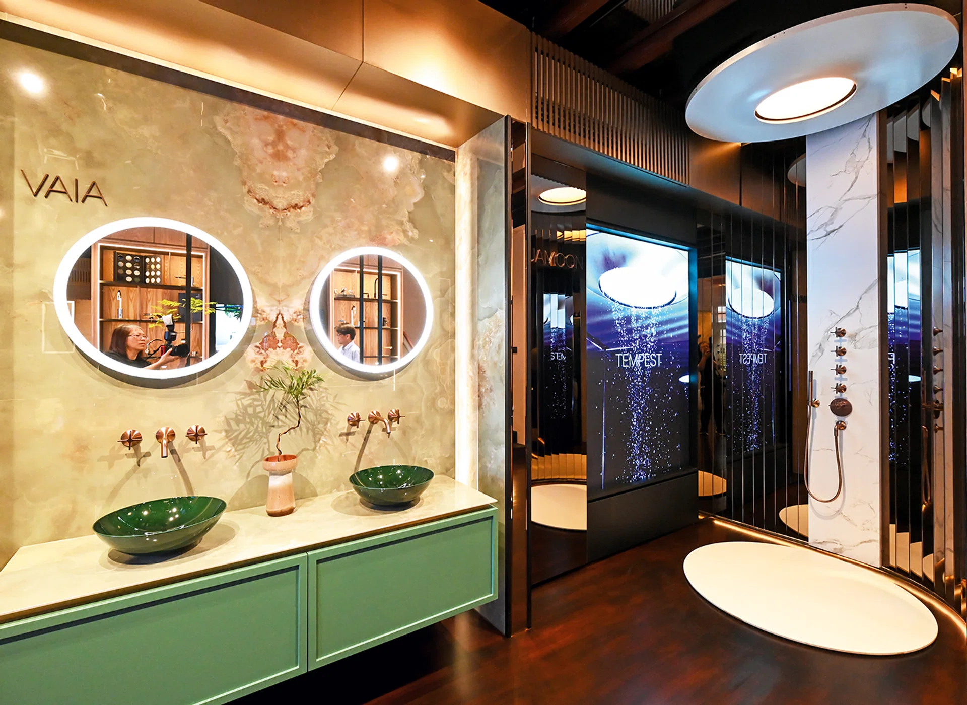 The main draw of the showroom is the immersive live shower area, a true oasis within the city. Resembling a premium spa, the acclaimed Aquamoon invites you to reconnect your senses with its four water flow modes and mood lighting designed to rejuvenate your senses.