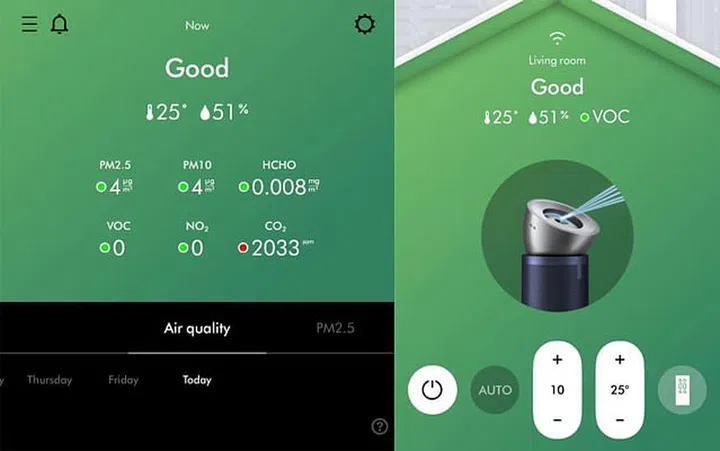This includes controlling the purifier from your mobile device, as well as finding out the air quality of your home. There are graphs to show you the air quality from day to day or even week to week.
