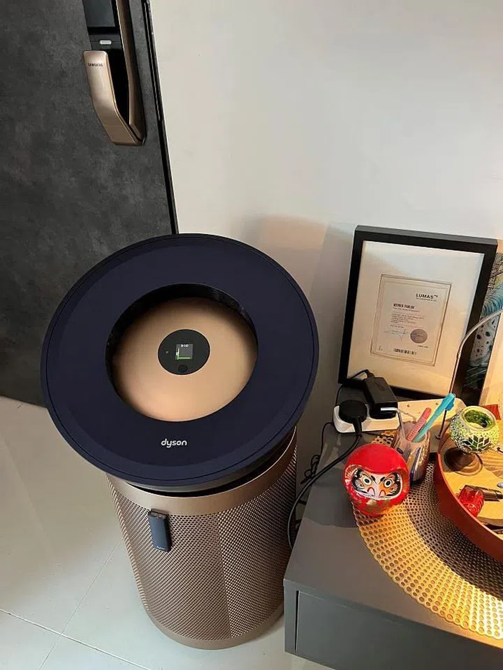 Aesthetically, the Big+Quiet Formaldehyde in Prussian blue and gold looks very high-end. As with all of Dyson's products, the finishing is smooth and matte in style. The rich hues complement my grey cabinetry perfectly in my living room, and while it takes up a slightly larger footprint compared to other Dyson purifiers, the size is just nice to fit right next to my TV console.
