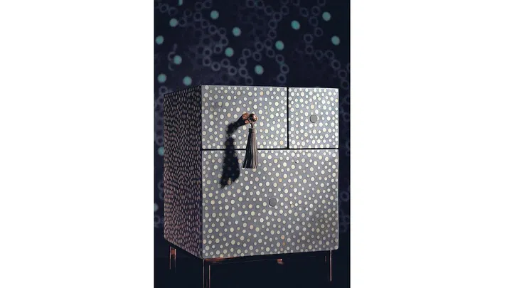 Magnetica Mixgrid, priced from S$599, is a series of storage units that come in different configurations. They all come with a dotted bone-inlay, and the dots are inspired by a Nonya kebaya. What makes the collection special is that there are no knobs or handles. Instead, the drawers can only be opened by a customised magnetic key.